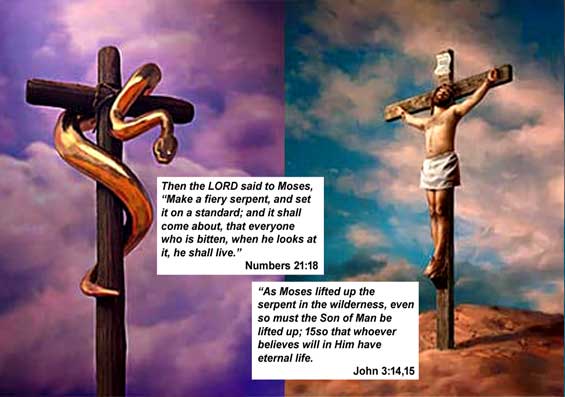 Numbers 21:6-9 Israel grumbled again which angered God enough to send venomous snakes among them. Moses pleaded with God… God commanded Moses to make a bronze snake, mount it on a pole and erected it at the center of the camp. The instruction for the people was that if one was bitten by a serpent, all he/she had to do was look at it and he/she will be healed.