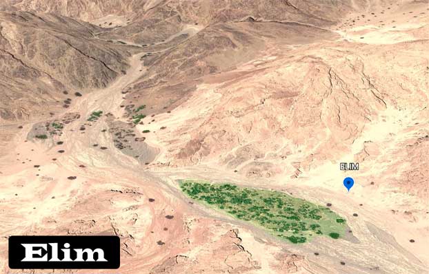 The Elim Oasis is about 27 miles south from where the Israelites made landfall.