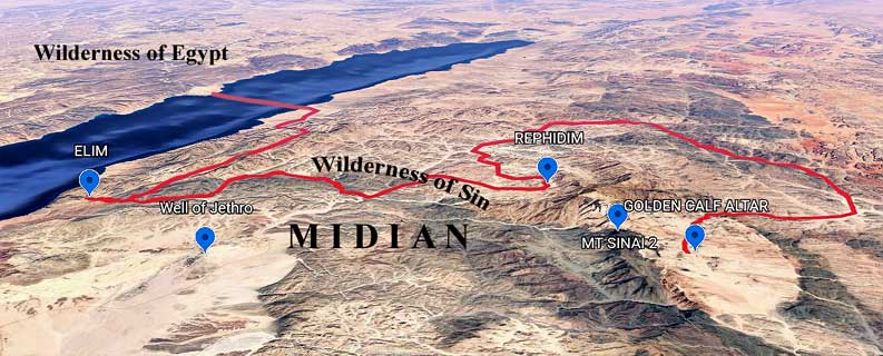 Let us again refer to the map below but this time we will follow the exodus trail in red to the site of Mt Sinai 2.