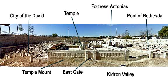 The scaled facsimile Temple you see was based on the Second Temple built by the returned Judean exiles, then opulently refurbished by Herod the Great. In Mark 13, when standing on the Mount of Olives, the disciples pointed out the lavishness of the Temple complex and was awed by it. But for Jesus, all it brought was tears to His eyes, for He saw its destruction (v2) which did occur 35 years from then. But we are getting ahead of the story. Let’s go to the…