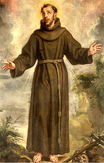 Francis of Assisi, originally known as Giovanni di Pietro di Bernardone, was a mystic Italian Catholic friar. He founded the Franciscan Order, and was one of the most venerated figures in Medieval Christianity. He was inspired to lead a life of poverty and itinerant preaching. Pope Gregory the 9th canonized him in 1228. He was usually depicted in a brown homespun robe with a rope as a belt.